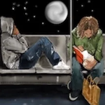 “Orange Brothers at Night Window”